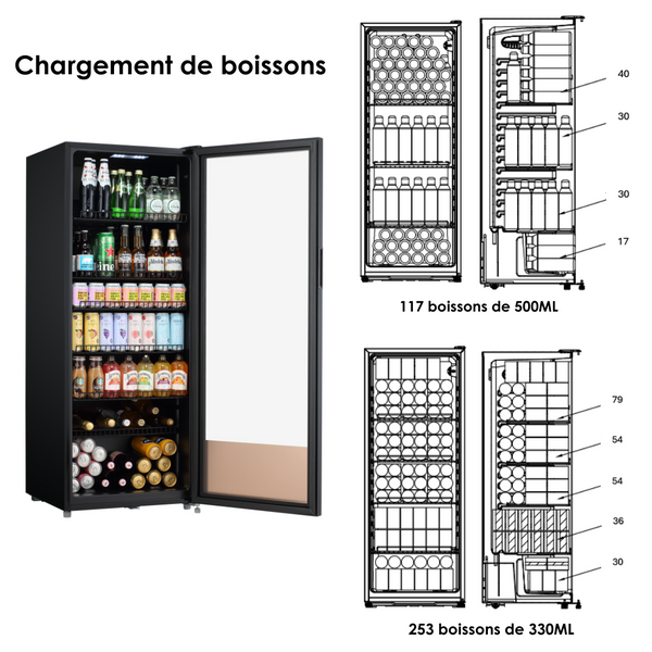 Le concept de chargement raisonnable garantit une répartition homogène des boissons, permettant au réfrigérateur de fonctionner efficacement et de maintenir une température stable