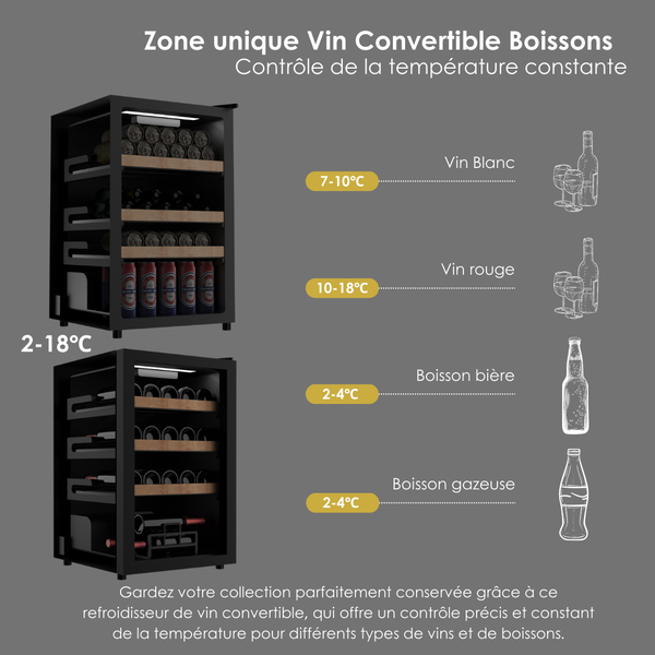 Il s'agit d'un réfrigérateur multifonctionnel qui peut être utilisé à la fois comme une cave à vin et comme un réfrigérateur à boissons