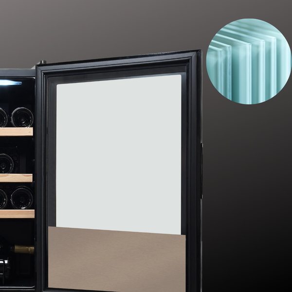 Le verre peut bloquer efficacement la lumière forte pour maintenir une température stable à l'intérieur de la cave à vin
