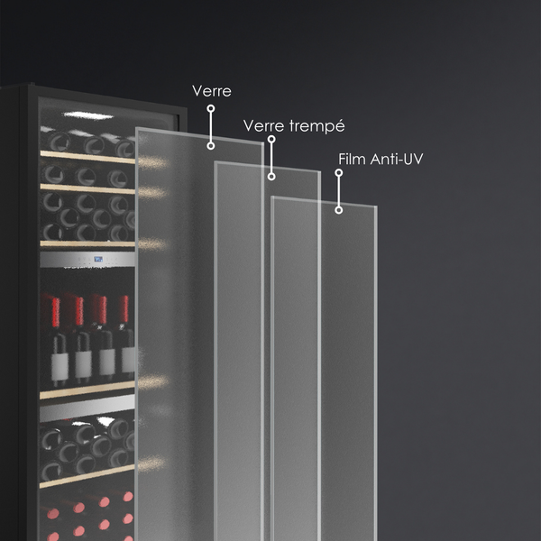 Dotée d’un verre triple couche avec protection anti-UV, cette cave à vin préserve vos bouteilles des rayons nocifs de la lumière. Vos vins restent à l’abri des altérations, garantissant une conservation parfaite et un goût authentique
