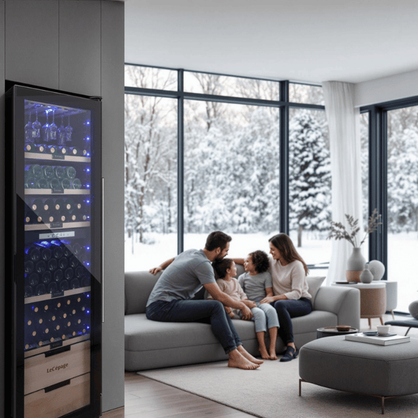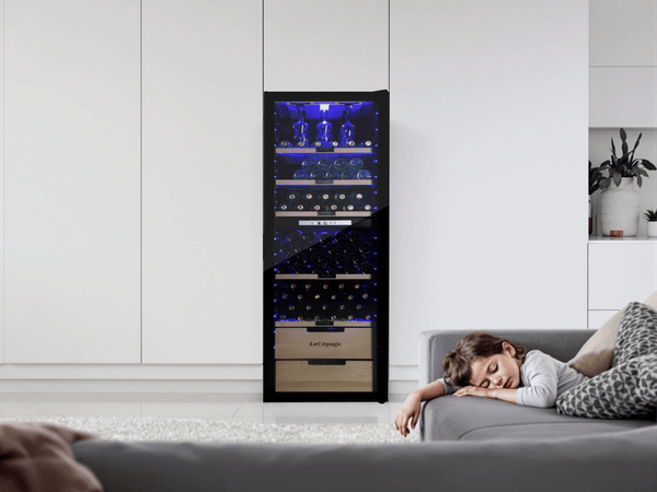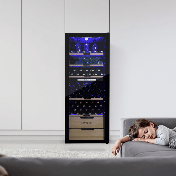 La technologie de compresseur avancée, associée à des clayettes en bois haut de gamme, fonctionne en harmonie pour minimiser les fluctuations de température et les vibrations, garantissant des conditions de vieillissement optimales. Ce système sophistiqué maximise l'espace intérieur tout en offrant une finition luxueuse qui améliore à la fois la fonctionnalité et l'esthétique.