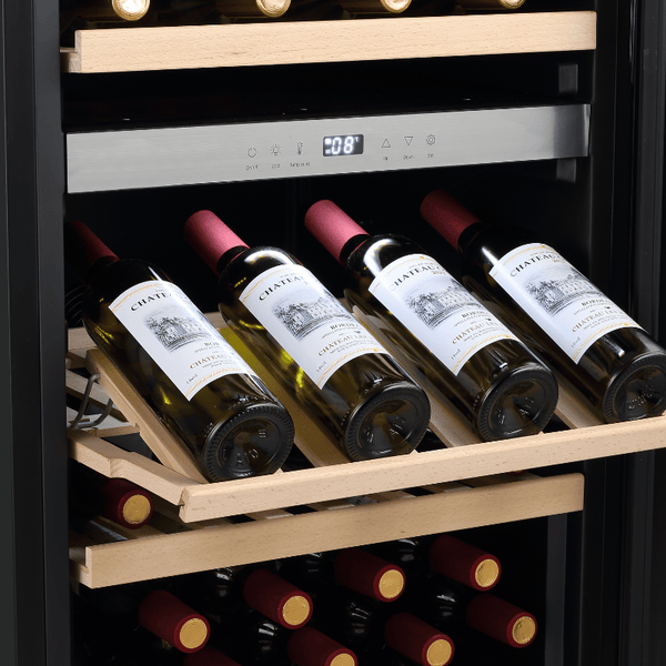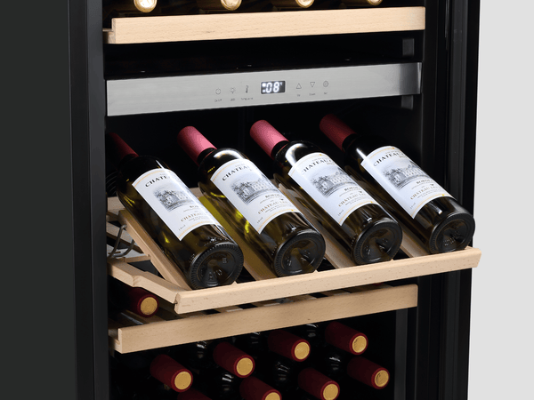 La technologie de compresseur avancée, associée à des clayettes en bois haut de gamme, fonctionne en harmonie pour minimiser les fluctuations de température et les vibrations, garantissant des conditions de vieillissement optimales. Ce système sophistiqué maximise l'espace intérieur tout en offrant une finition luxueuse qui améliore à la fois la fonctionnalité et l'esthétique.