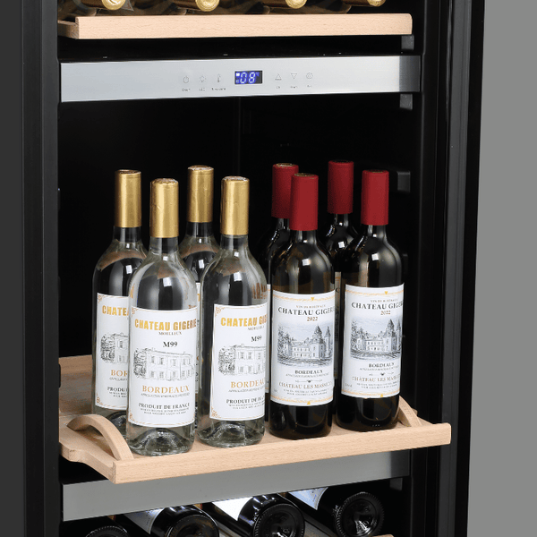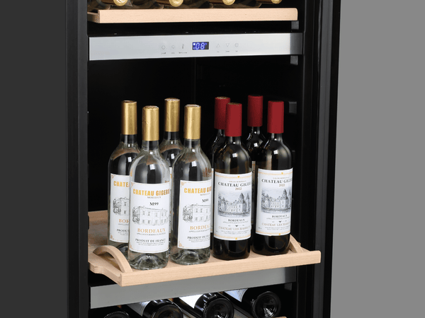 La technologie de compresseur avancée, associée à des clayettes en bois haut de gamme, fonctionne en harmonie pour minimiser les fluctuations de température et les vibrations, garantissant des conditions de vieillissement optimales. Ce système sophistiqué maximise l'espace intérieur tout en offrant une finition luxueuse qui améliore à la fois la fonctionnalité et l'esthétique.