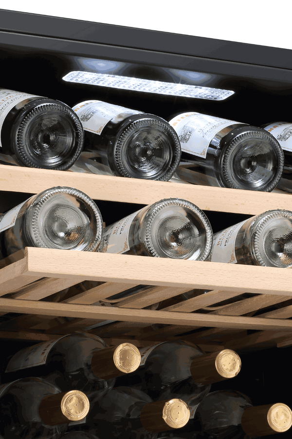 La technologie de compresseur avancée, associée à des clayettes en bois haut de gamme, fonctionne en harmonie pour minimiser les fluctuations de température et les vibrations, garantissant des conditions de vieillissement optimales. Ce système sophistiqué maximise l'espace intérieur tout en offrant une finition luxueuse qui améliore à la fois la fonctionnalité et l'esthétique.