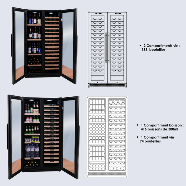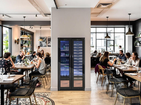 cette cave à vin allie polyvalence et conservation optimale, offrant un stockage organisé pour les bouteilles ouvertes et diverses boissons. Un choix idéal pour les établissements exigeants en matière de qualité et d'élégance