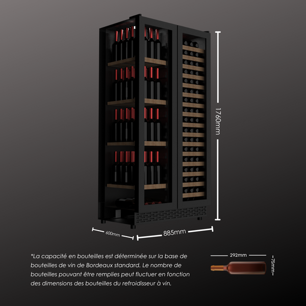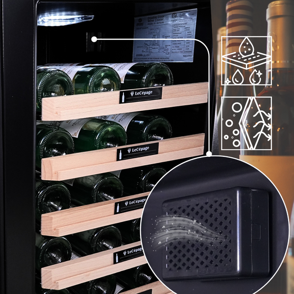 Notre cave à vin dispose d'un système de refroidissement par ventilation, assurant une circulation d'air optimale et une température constante. Cela prévient les fluctuations qui peuvent altérer vos vins, garantissant ainsi une conservation idéale et un potentiel de dégustation maximisé