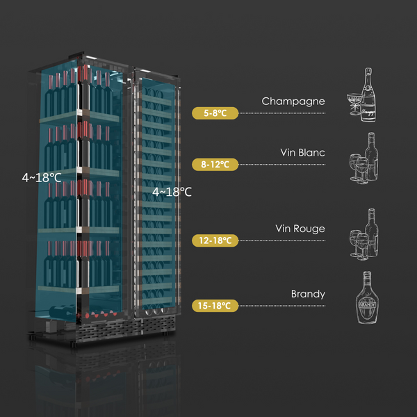 Gardez votre collection parfaitement conservée grâce à la réfrigération à deux zones, qui offre un contrôle précis et constant de la température pour les différents types de vin.