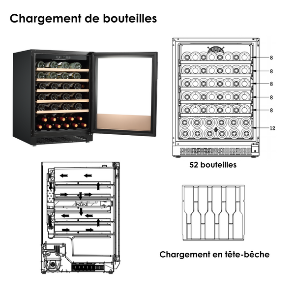 Le concept de chargement raisonnable garantit une disposition harmonieuse de vos bouteilles, permettant de maximiser l’espace tout en évitant la surcharge nuisible à leur conservation