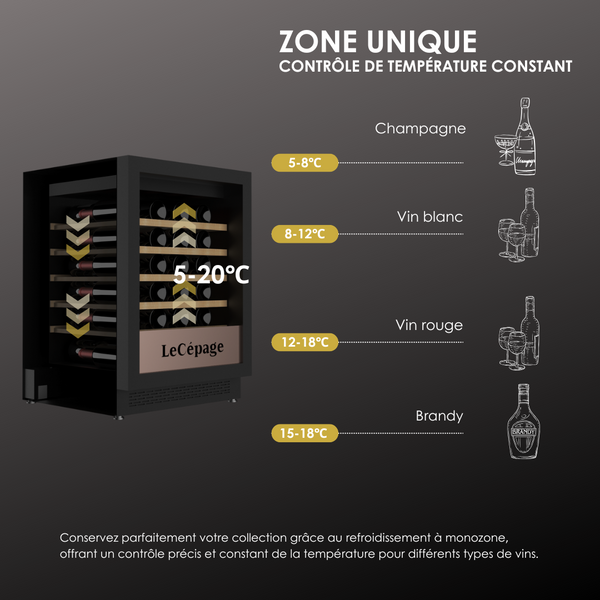 Grâce à la technologie avancée du compresseur silencieux, votre cave à vin fonctionne avec un niveau sonore minimal, garantissant une ambiance calme et paisible dans votre intérieur