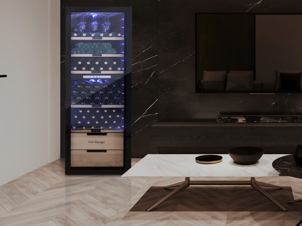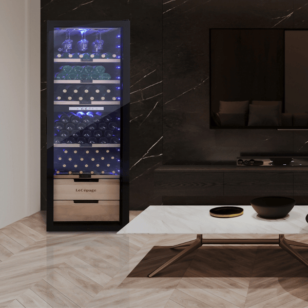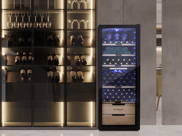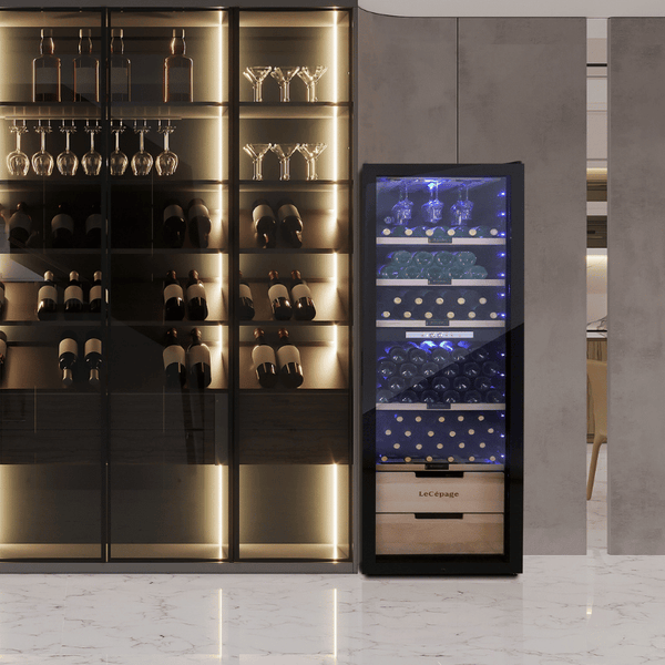 La technologie de compresseur avancée, associée à des clayettes en bois haut de gamme, fonctionne en harmonie pour minimiser les fluctuations de température et les vibrations, garantissant des conditions de vieillissement optimales. Ce système sophistiqué maximise l'espace intérieur tout en offrant une finition luxueuse qui améliore à la fois la fonctionnalité et l'esthétique.